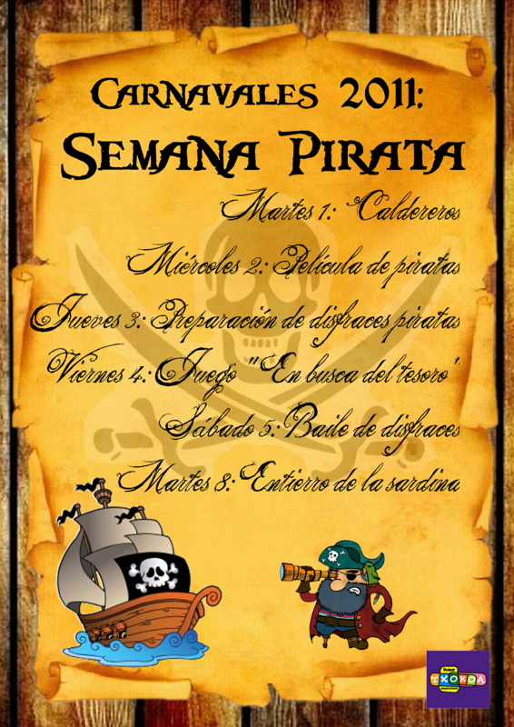 Del 1 al 8 de marzo los/as piratas más temidos de los siete mares abordarán el Haurtxoko de Martutene con motivo de los Carnavales. Durante esta semana se dará la bienvenida a esta gran fiesta celebrando los caldereros con los más pequeños/as. También habrá cine, una “Búsqueda del tesoro”, talleres e incluso un gran baile de disfraces. Se despedirá la semana, como todos los años, con el entierro de la sardina.