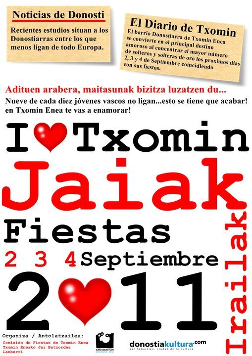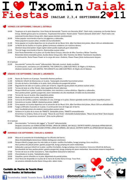 Este fin de semana son las fiestas del barrio de Txomin-enea. Ponemos el programa de fiestas para que sepáis qué actividades tienen programadas, por si os queréis pasar: