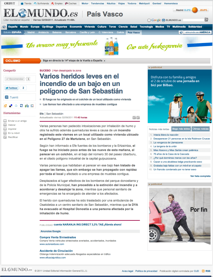 ← Dos heridos en el incendio de un estudio en el Polígono 27 de Martutene · Posted on 3 de septiembre de 2011 · Leave a Comment · 999 × 1295