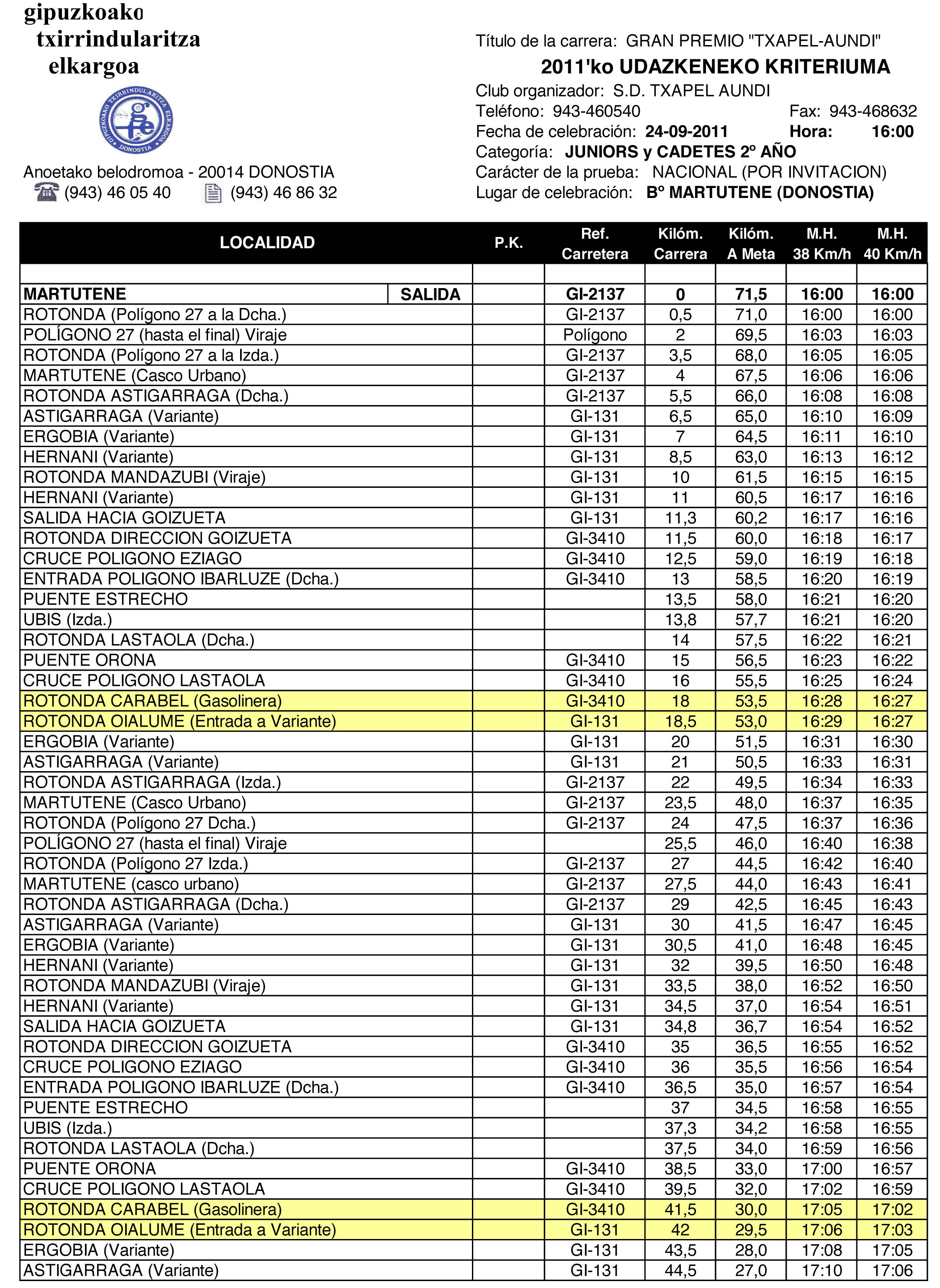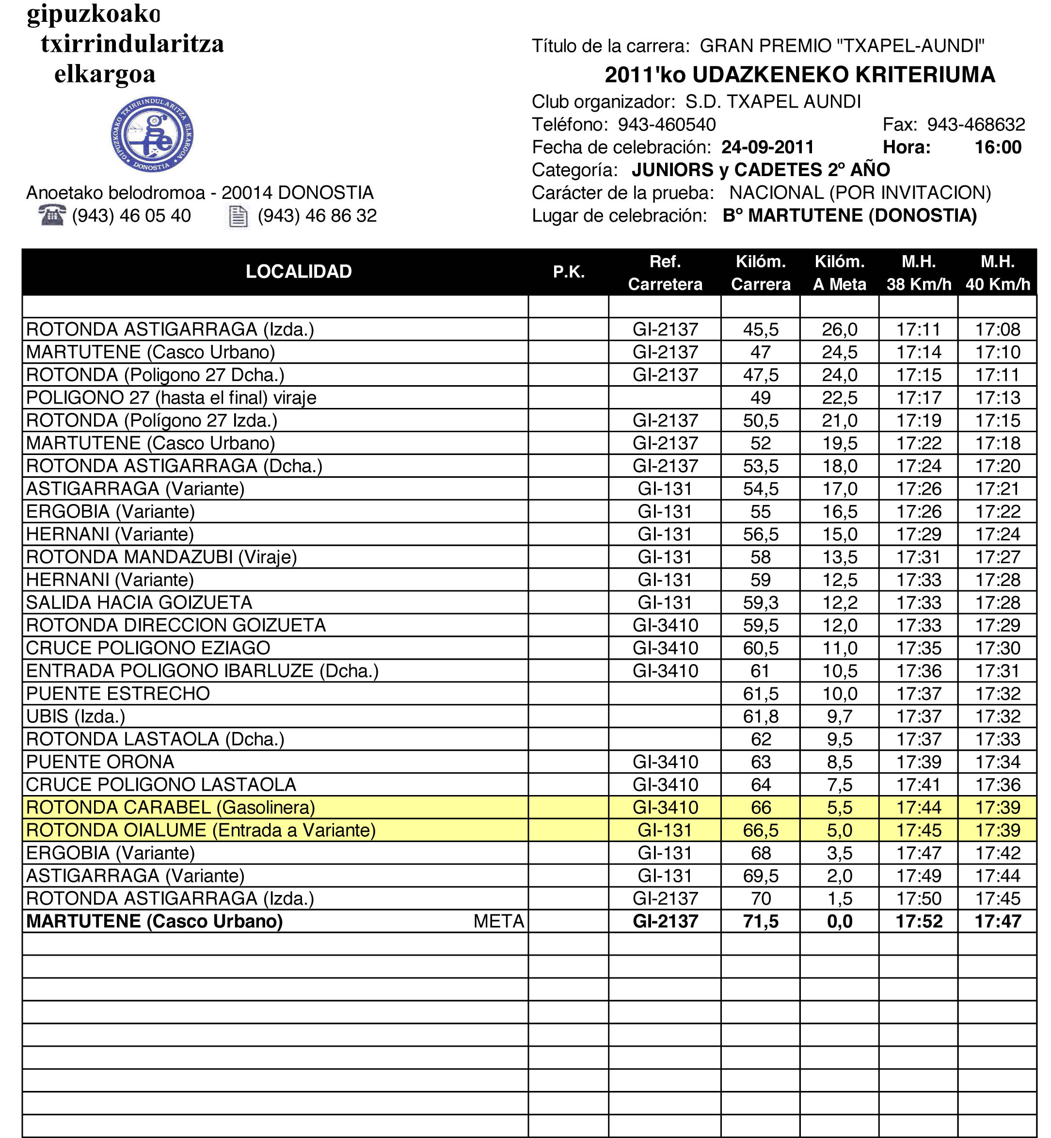 Información obtenida de la web de la Federación Gipuzkoana de Ciclismo: http://www.gtxe.org/