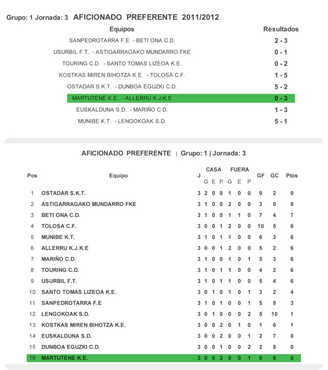 Martutene K.E. – Jornada 3 (resultado y clasificación)