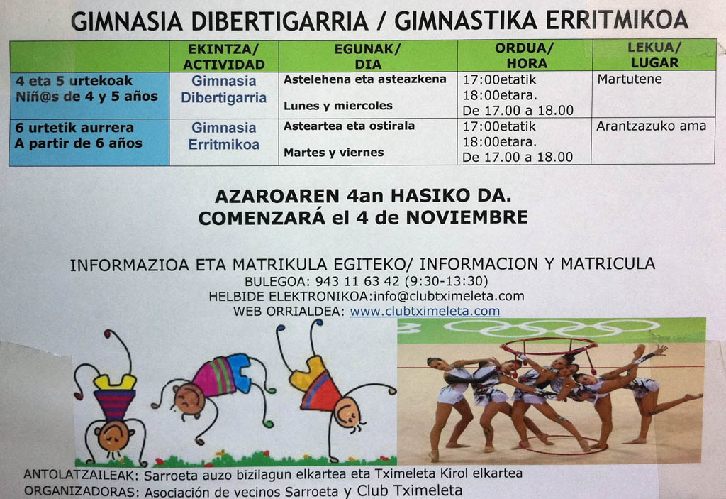 Clases de gimnasia rítmica para niñ@s en Martutene