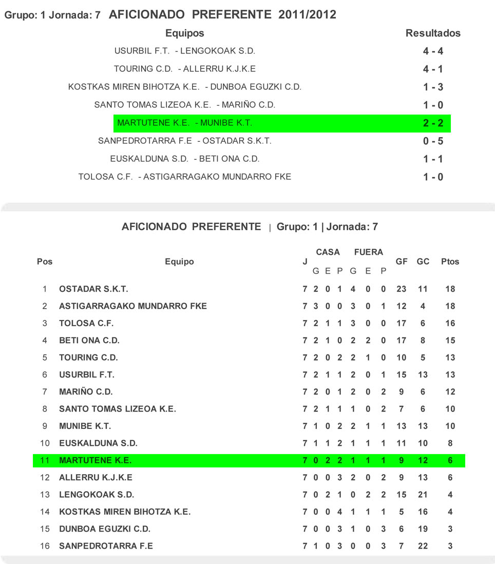 Martutene K.E. – Jornada 7 (resultado y clasificación)