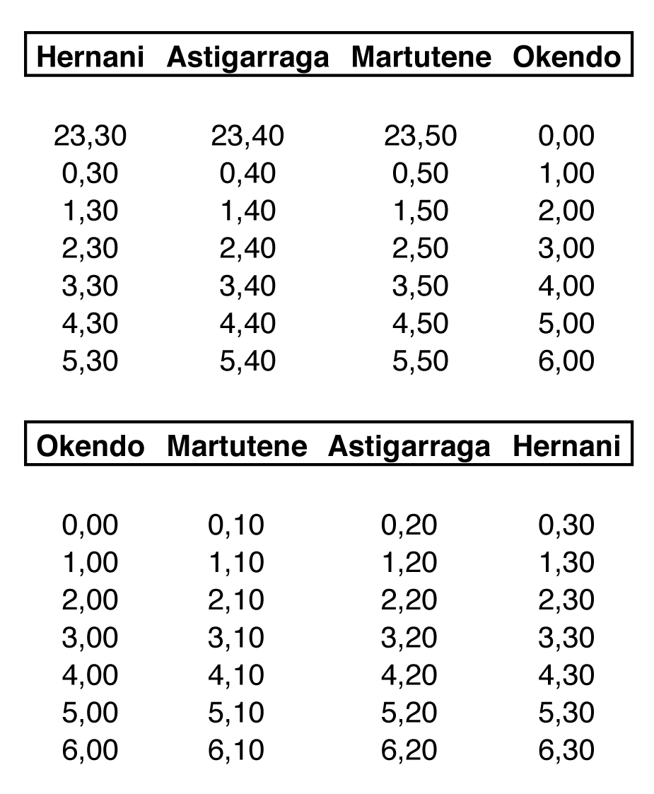Nuevos servicios nocturnos (a partir de hoy) / Gaueko zerbitzu berriak (gauretik aurrera)