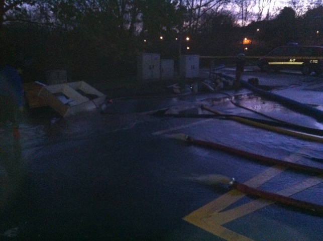 Los bomberos continúan extrayendo el agua los garajes de la calle Goizueta.