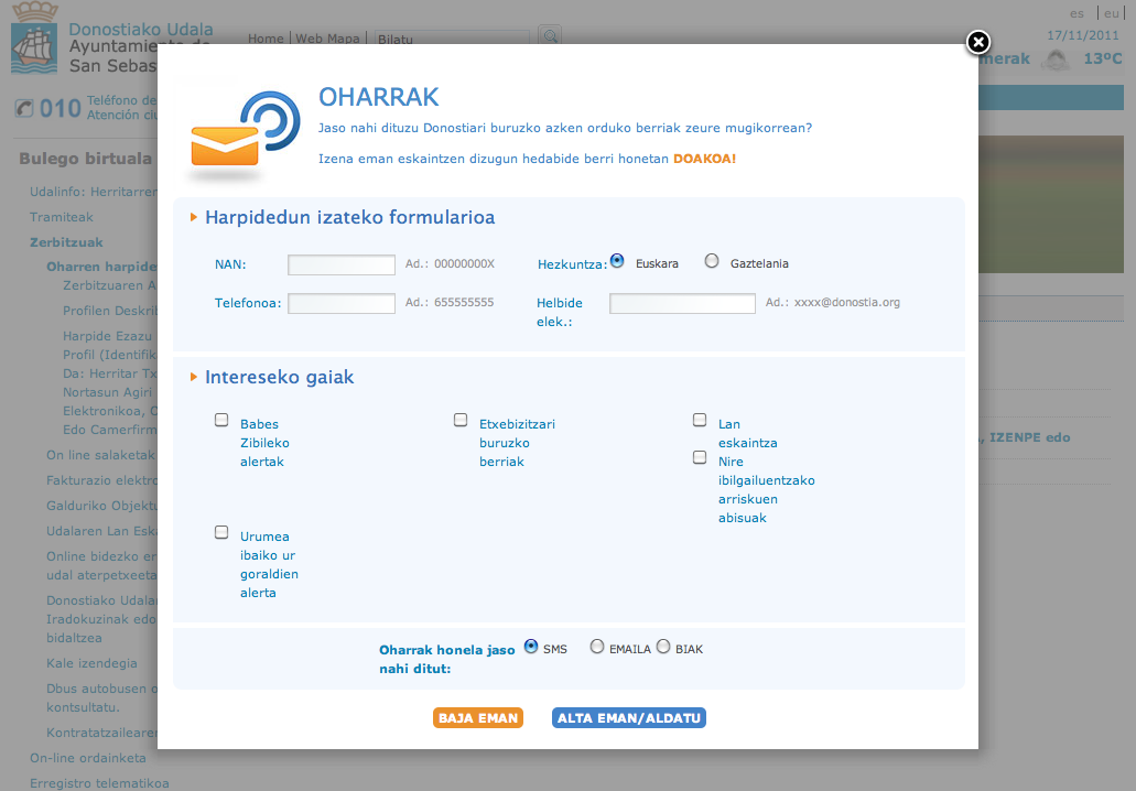 Alerta-mailaren arabera, honako mezu hauek jasoko dira, euskaraz eta gazteleraz: