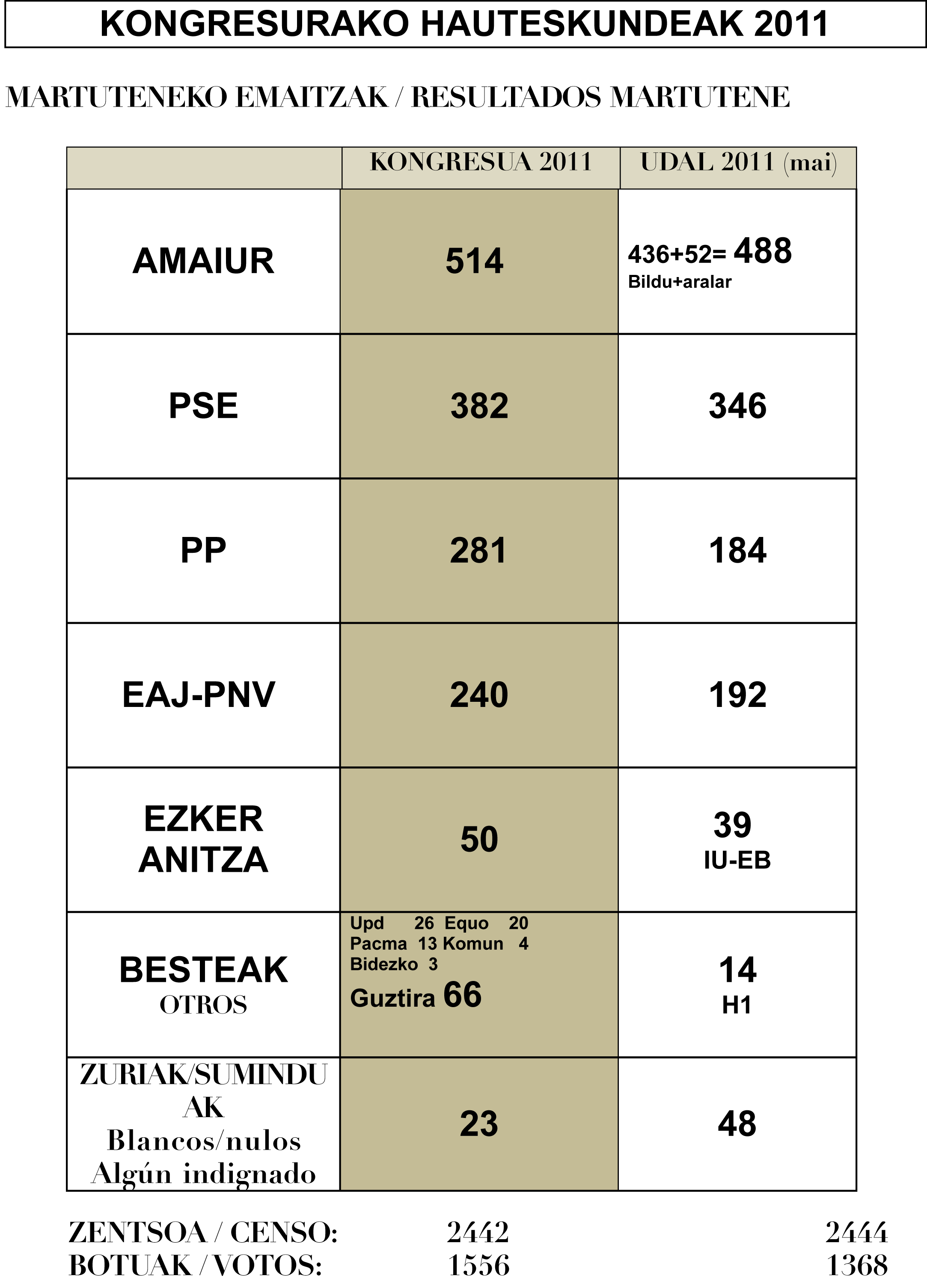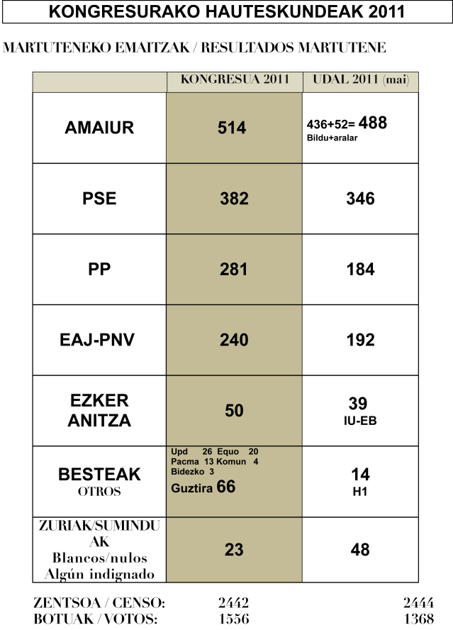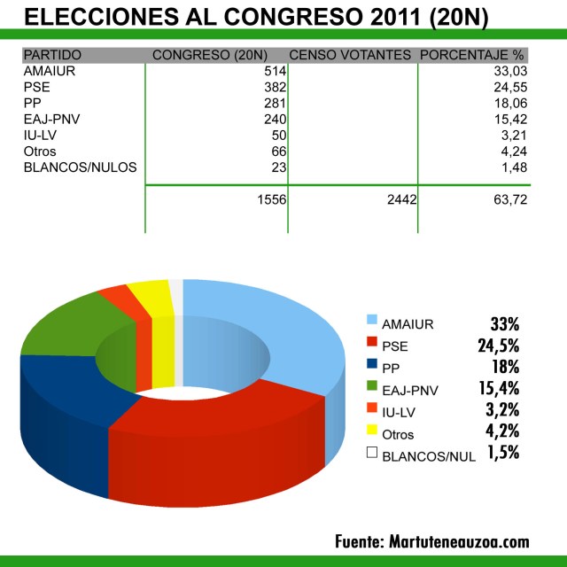 Archivado en Bizilagunak/Ciudadanos, Partaidetza/Participación · Tagged with AMAIUR, colegio electoral, congreso, donostia, elecciones, elecciones generales, Gipuzkoa, hauteskundeak, iu, izquierda unida, kongresua, los verdes, martutene, PNV, PP, presidente, PSE, psoe, resultados, senado, urna, voto en blanco, voto nulo, votos