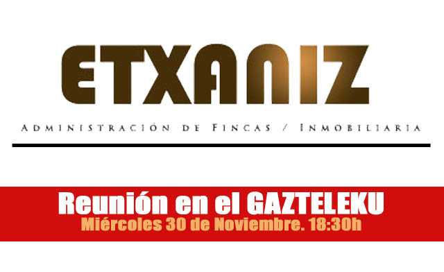 LA REUNIÓN ES EN EL GAZTELEKU!! Reunión de Propietarios con Administraciones Etxaniz (GAZTELEKU 18:30h)