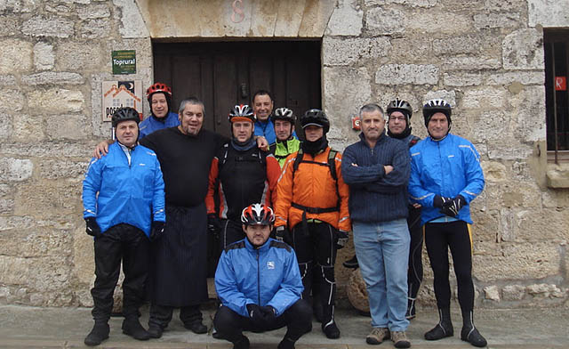 «Etapa potente la de hoy. Salimos de Burgos con Xirimiri, cogemos dirección Ledigos pero a 12 km de Burgos en el cruce de Tardajos nos desviamos 2km para visitar a Pablo Cesar, conocido por estos lares como Patxi. El recibimiento espectacular y el desayuno en dos palabras IM PRESIONANTE. Todo lo que tiene de grande lo tiene de corazón. Sopa Castellana, pan tostado, zumo natural, mermeladas, pan tumaca, vino y café, como para hacer el camino de Santiago de tirón. Regenta una casa rural en Las Quintanillas a 12km de Burgos carretera Nacional 120 dirección Leon, Un sitio que recomendamos a todo el que quiera gozar de unos días de autentico placer. LA POSADA DEL PINTOR. ESKERRIK ASKO PABLO CESAR (PATXI). En cuanto a la etapa más de lo mismo pedales risas buen ambiente y después de la ducha vueltita por la zona para degustar los caldos y platos típicos del país.»
