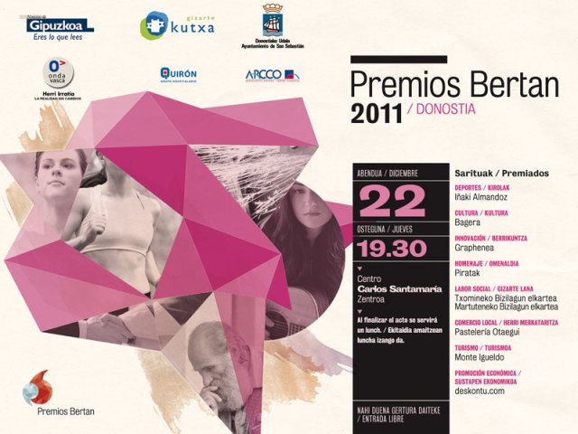 El premio se entrega esta tarde en el Centro Carlos Santamaría (nueva Biblioteca de Ibaeta) a las 19:30h. La entrada es gratuita y libre.