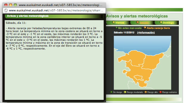 Sábado 11 Alerta naranja por bajas temperaturas / Larubanta hilak 11-izotza muturreko tenperatura baxuei dagokion alerta laranja daukagu