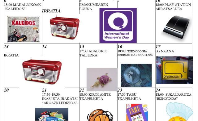 Gaztelekuko martxoko programaketa / Programación de marzo en el Gazteleku