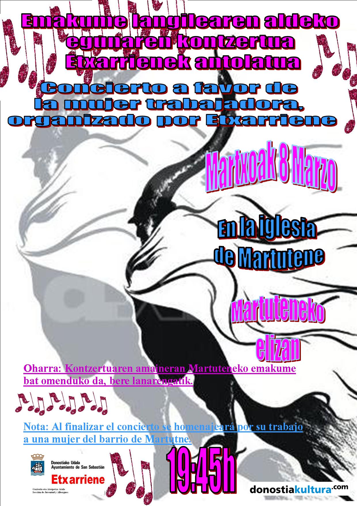 Gogoratu: gaur 19:45-Martuteneko elizan, Emakumearen Eguna ospatzeko abesbatz kontzertua / Recordad: hoy 19:45-Iglesia de Martutene, concierto coral para celebrar el día de la mujer
