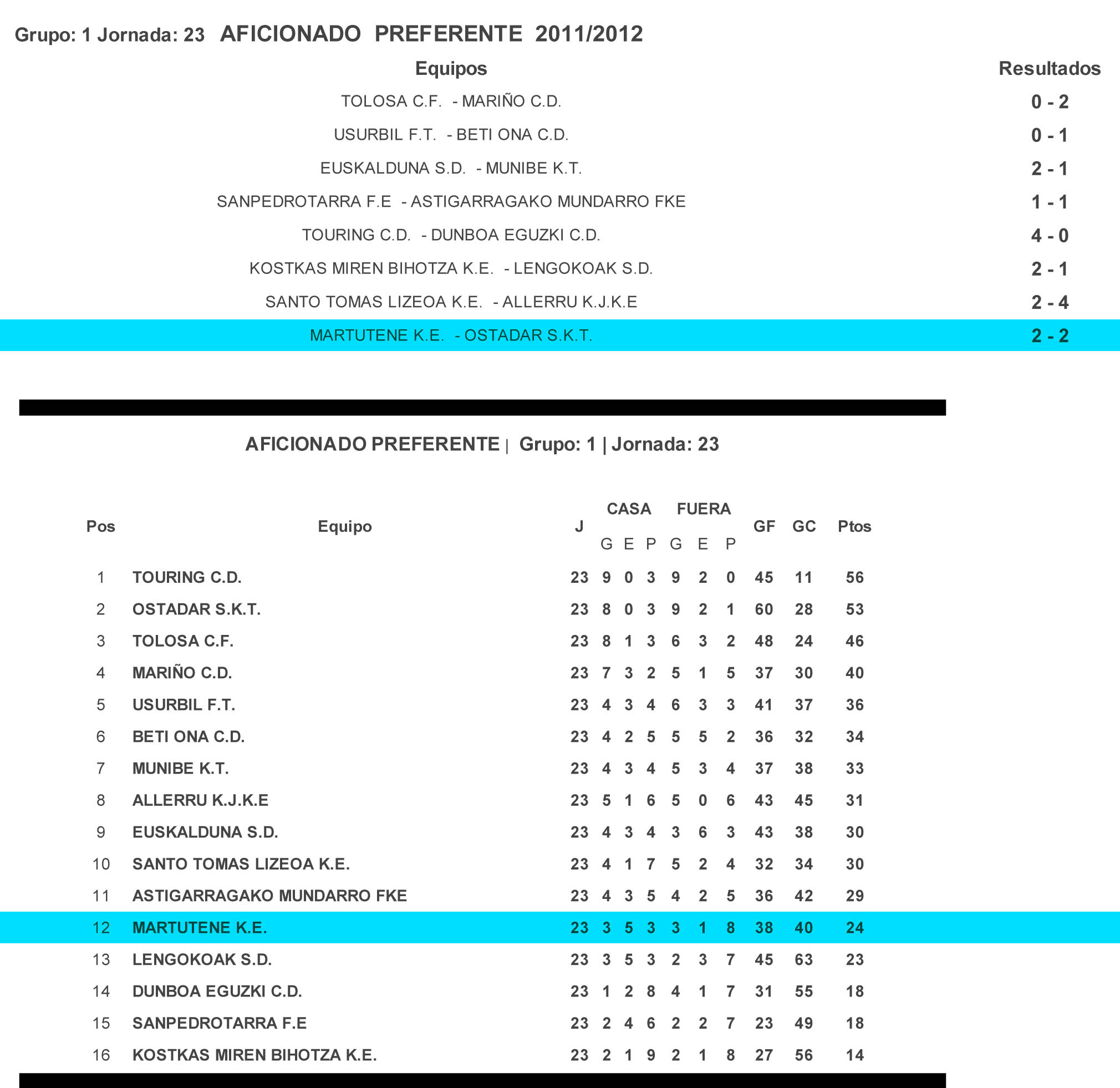 Archivado en Kirola/Deporte, Martutene Kirol Elkartea · Tagged with allerru, beti ona, derrota, donostia, dunboa, Dunboa Eguzki C.D., empate, euskalduna, fútbol, Federación Gipuzkoana de fútbol, Gipuzkoa, goles, kostkas miren bihotza, lengokoak, liga, mariño, martutene, martutene KE, MKE, mundarro, munibe, ostadar, Regional Preferente de Gipuzkoa, sanpedrotarra, tolosa, touring, ususrbil, victoria