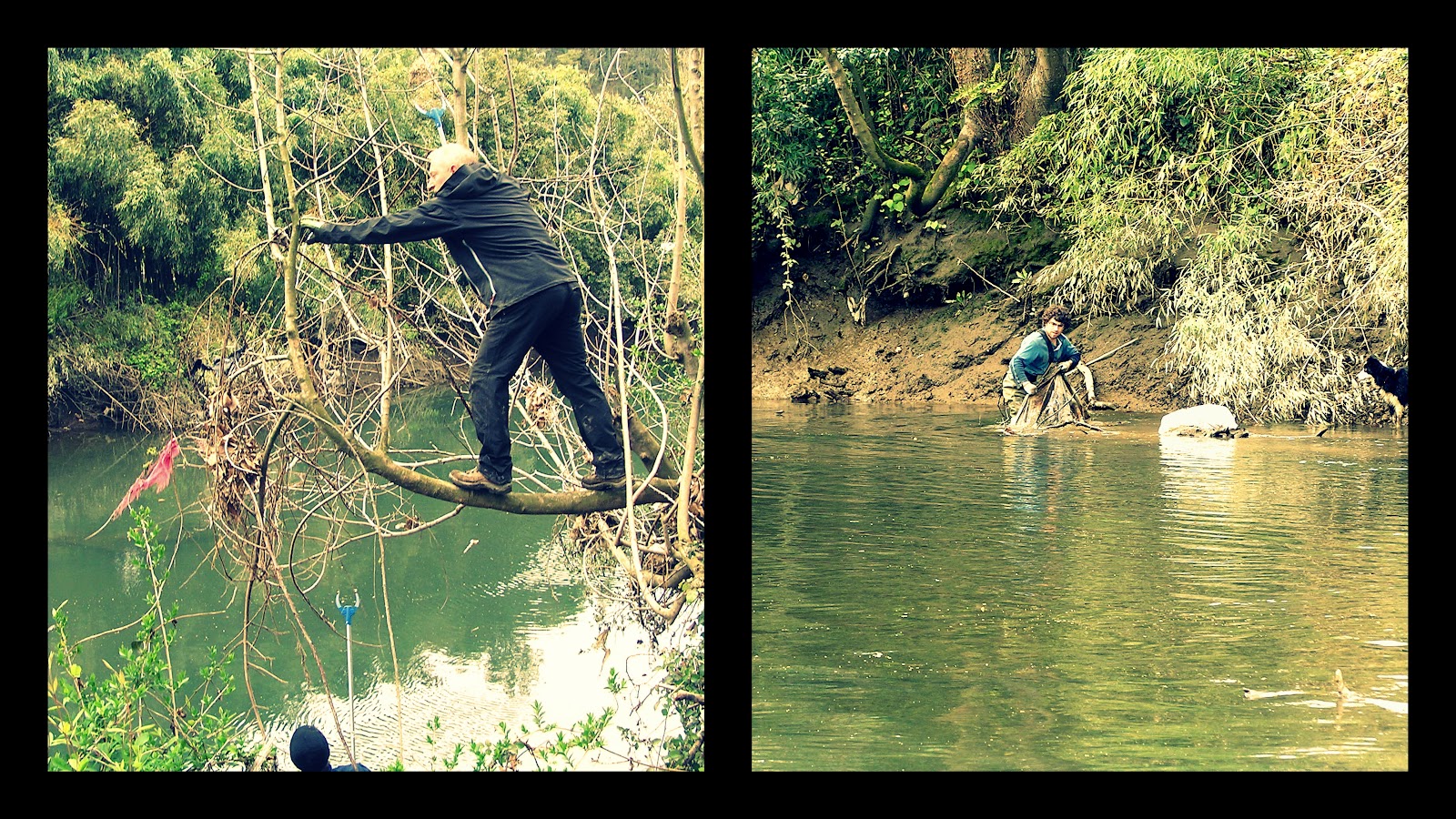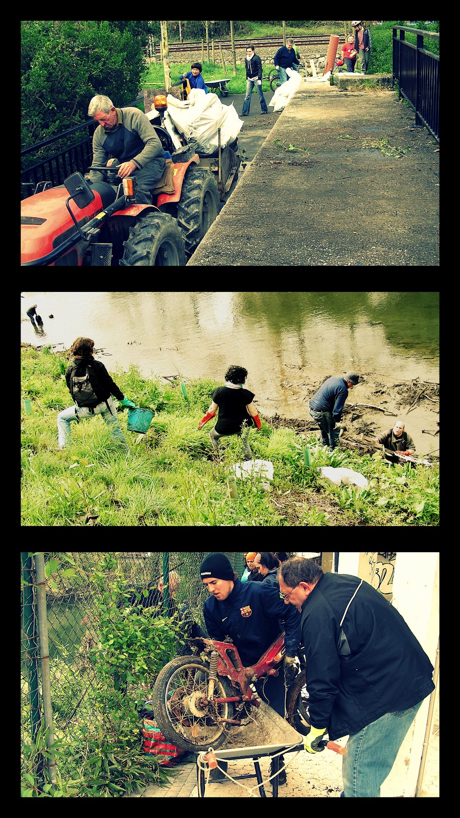 Today was our third cleaning session and the best way to describe it is simply «a triumph» ! I really had my doubts today that we would be few people, mainly because its Easter and we received a few emails from friends and unknows saying that ‘they can’t this time, hopefully next time’. Also as often happens here in EH, the weather was shit! So, I was (and still am as I write this) totally astonished that in the end we were 35 + maybe 2 or 3 more people !! And at least 30 of these are locals (well, from Martutene, Astigarraga, Hernani, Usurbil, Lezo, Donostia, ….). So, it just goes to show that when you have some crazy idea and pursue it hard enough, you can arrive at your goal !