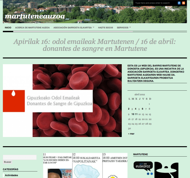 Martutene cuenta con numerosas asociaciones y organismos, como Etxarriene, el Gazteleku, el club de fútbol Martutene, La Sociedad Txapel-Haundi y su Club Cicloturista, etcétera», explica su bloguero, Javi Vicente. Así que ya de partida el blog comenzó a tener vida diaria difundiendo todo lo que acontece o afecta a Martutene. El blog ha rebasado en la actualidad las 50.000 visitas desde su puesta en marcha.