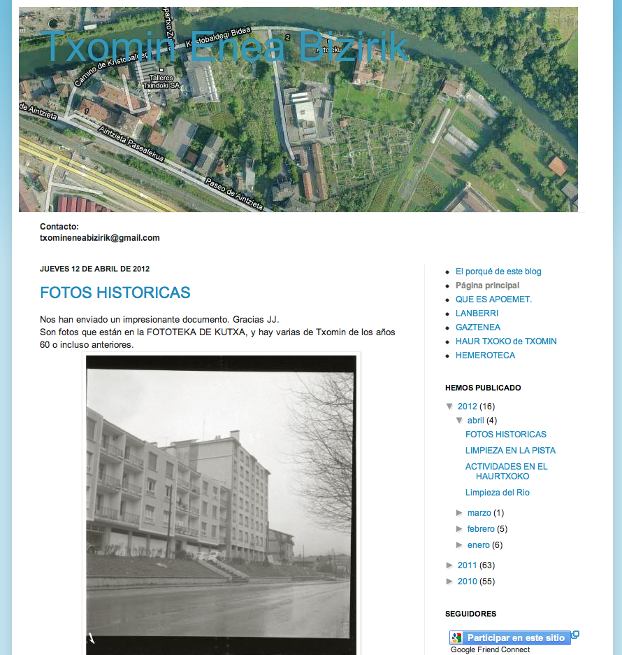 Pero Txomin sigue esperando a una importante restauración. Al margen de estos problemas, el blog se hace eco de actividades, eventos, comentarios y sugerencias por parte de los sus vecinos del barrio, y reuniones de la Asociación de Vecinos Lanberri, de la que Alfredo forma parte.