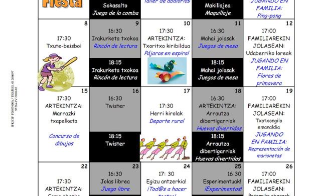 Haurtxokoa: maiatzeko programaketa / programación de mayo
