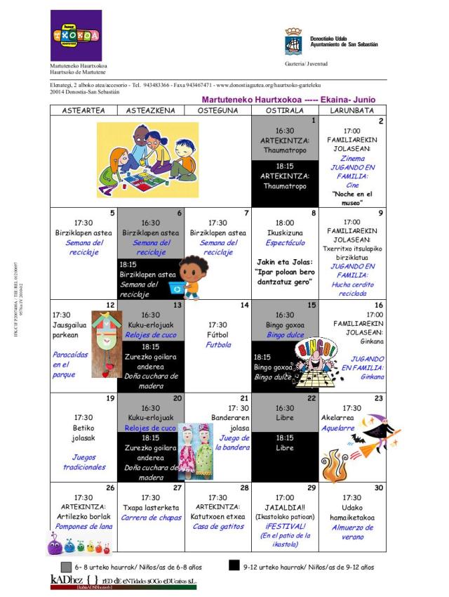 Haurtxokoa: ekaineko programazioa / programación de junio