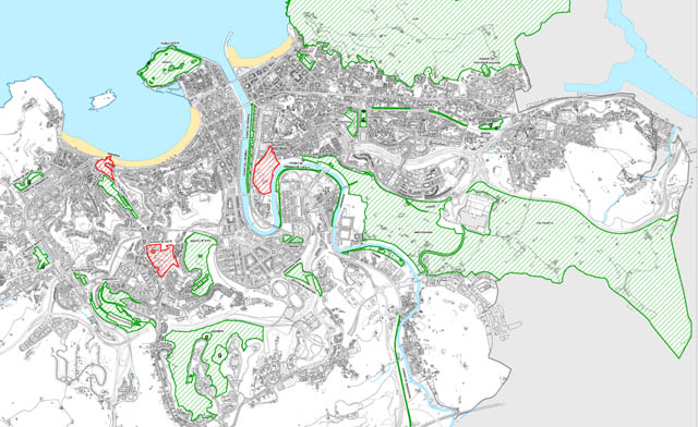 - Antiguo: Áreas abiertas entre el Paseo de Ondarreta y Paseo de Igeldo (Universidades); Área abierta delimitada por el Paseo de los Mikeletes, Paseo Pio Baroja, Palacio e Isturin, Parque Ibaeta y Plaza Zapatari.
