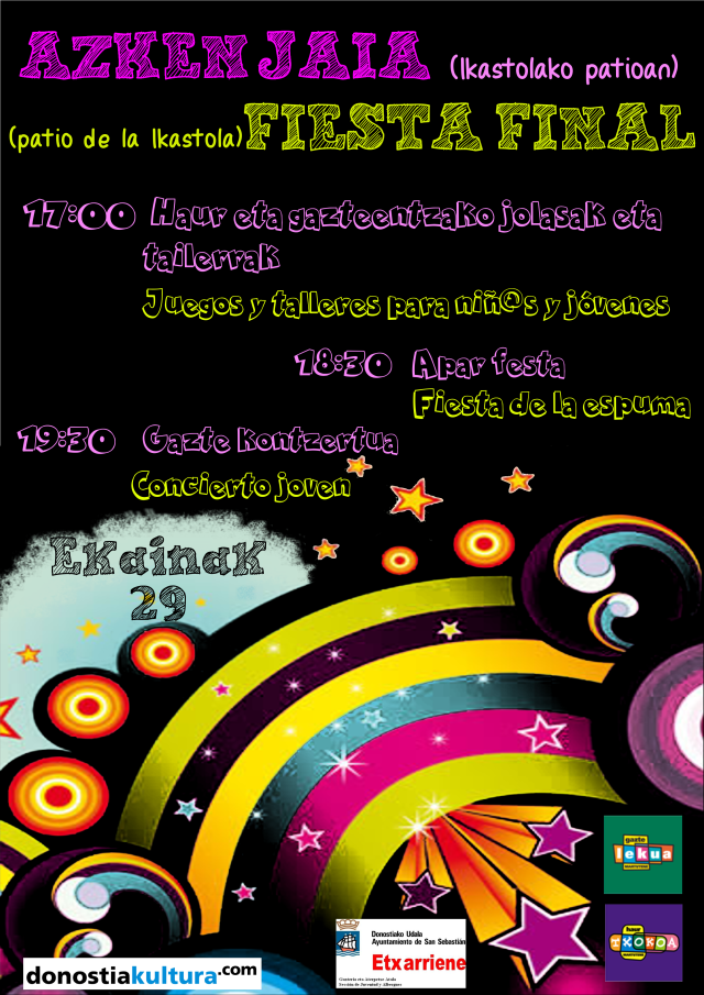 Ostiral honetan Haurtxoko eta Gaztelekuaren azken jaia!!! / Este viernes fiesta final del Haurtxoko y el Gazteleku!!!