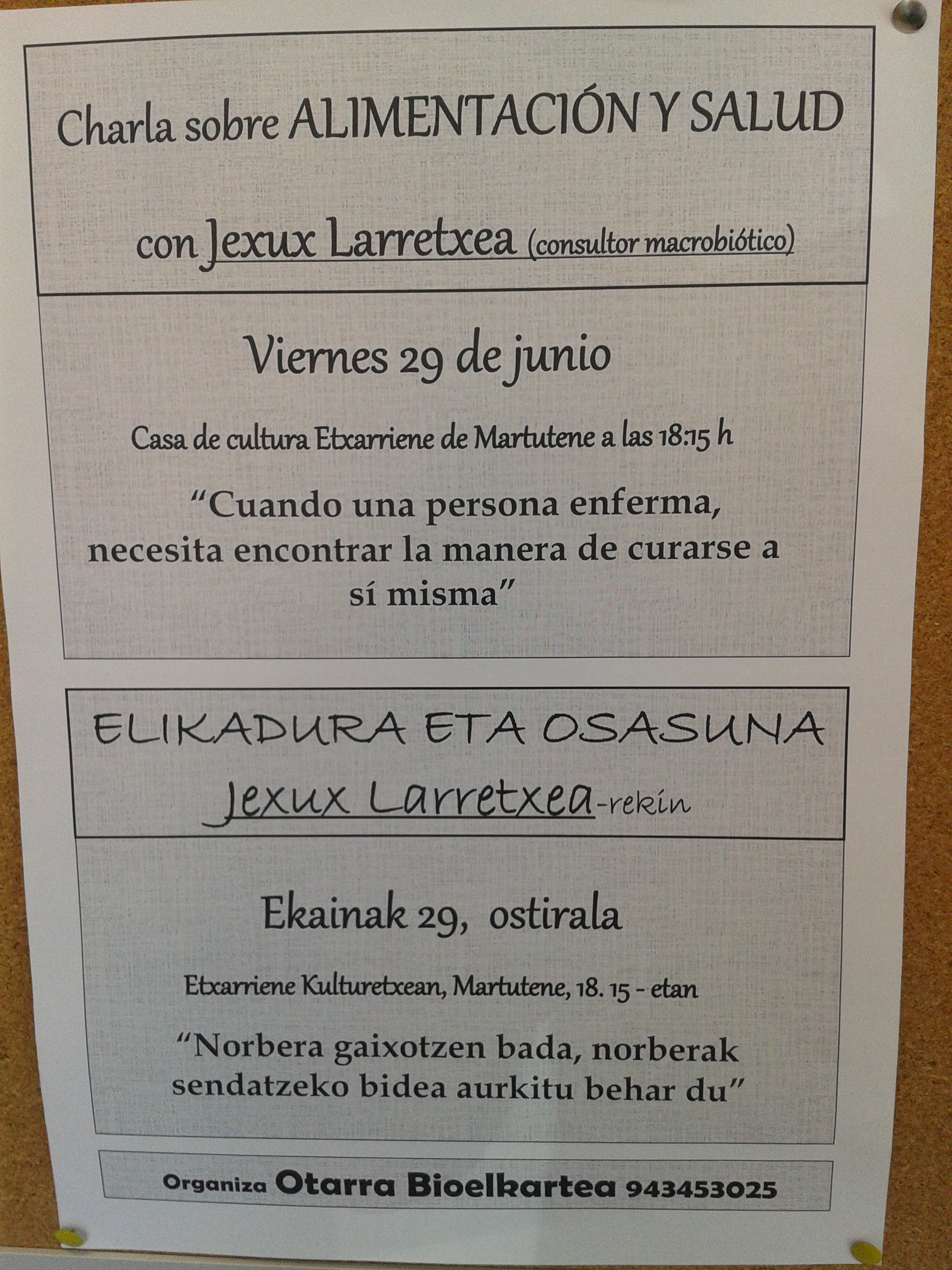 Archivado en Auzobizitza/Vida de barrio, Ekintzak/Actividades, Eragile sozialak/Agentes Sociales, Etxarriene, Iragarkiak/Anuncios, Partaidetza/Participación, Zerbitzuak/Servicios · Tagged with ahokulari, alimentación, bioelkartea, charla, consultor, elikadura, etxarriene, hitzaldia, jexux, larretxea, macrobiotico, makrobiotikoa, martutene, osasuna, otarra, salud