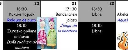 Martuteneko Haurtxokoak, Etxarrienen aurkitzen dena, ekaineko programaketarekin jarraituko du. Horren barne, aste honetan honako ekintzetan parte hartzeko aukera izango dute 6-12 urte bitarteko haurrek: Ekainak 19 asteartea: Betiko jolasak Ekainak 20 asteazkena: Kuku-erlojuak / Zurezko goilara anderea Ekainak 21 osteguna: Banderaren jolasa Ekainak 22 ostirala: Libre Ekainak 23 larunbata: Akelarrea ——————————————————– El Haurtxoko de Martutene, … Seguir leyendo →