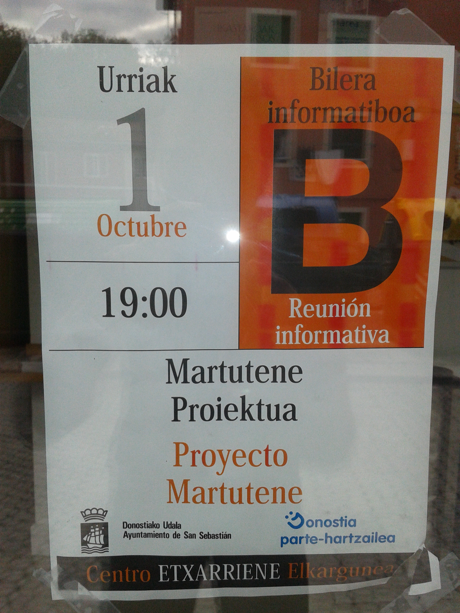 Etxarriene: Gaur 19:00tan «Martutene Proiektua» bilera informatiboa / Hoy 19:00 reunión informativa «Proyecto Martutene»