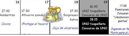 Martuteneko Haurtxokoak, Etxarrienen aurkitzen dena, urriko programaketarekin jarraituko du. Horren barne, aste honetan honako ekintzetan parte hartzeko aukera izango dute 6-12 urte bitarteko haurrek: Urriak 16 asteartea: Sukaldaritza Urriak 17 asteazkena: Altxorra zaindu! Urriak 18 osteguna: Sorpresen kutxa Urriak 19 ostirala: UNO txapelketa Urriak 20 larunbata: Familiarekin jolasean: «Udazkenerako puntua» ——————————————————– El Haurtxoko de Martutene, situado … Seguir leyendo →