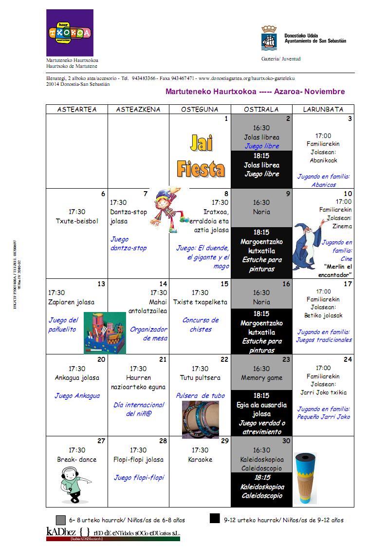 Haurtxokoko programazioa azaroan / Programación del Haurtxoko en noviembre