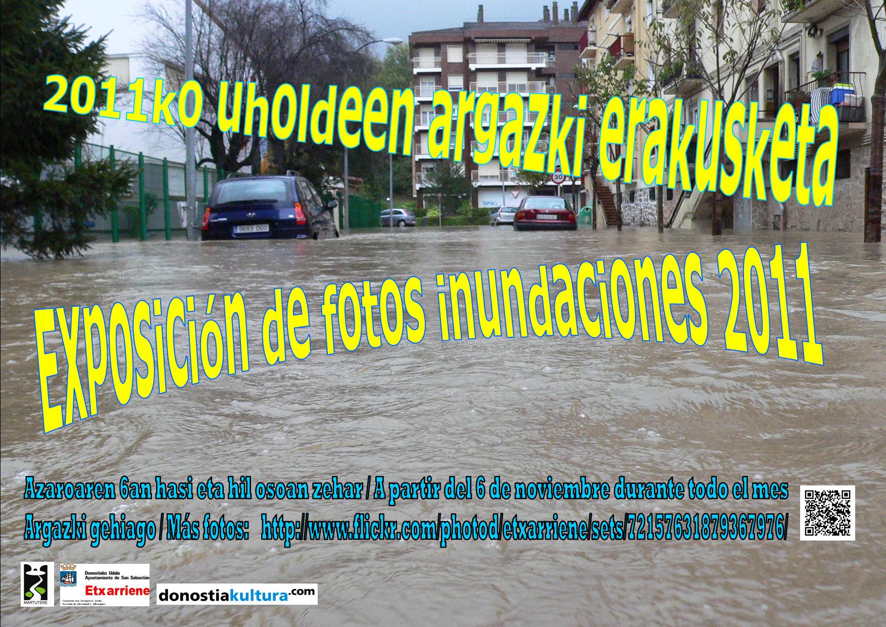 A partir de hoy en Etxarriene se pondrá en marcha una exposición de fotos sobre las inundaciones de 2011. Está compuesta de fotos cedidas por diferentes personas del barrio y se podrá visitar durante todo el mes. Esta actividad se ha organizado entre el Centro Cívico Etxarriene y la Asociación de Vecinos Sarroeta.