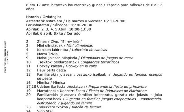 Archivado en Aisialdia/Ocio, Auzobizitza/Vida de barrio, Bizilagunak/Ciudadanos, Ekintzak/Actividades, Eragile sozialak/Agentes Sociales, Etxarriene, Haurtxoko, Iragarkiak/Anuncios, Partaidetza/Participación, Udaletxea/Ayuntamiento, Zerbitzuak/Servicios · Tagged with 2013, abril, apirila, etxarriene, haurrak, haurtxoko, martutene, niñas, niños, programación, programazioa