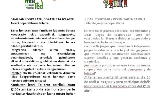 Archivado en Aisialdia/Ocio, Auzobizitza/Vida de barrio, Bizilagunak/Ciudadanos, Ekintzak/Actividades, Etxarriene, Haurtxoko, Iragarkiak/Anuncios, Partaidetza/Participación, Udaletxea/Ayuntamiento, Zerbitzuak/Servicios · Tagged with cooperativos, etxarriene, familiarekin jolasean, haurrak, haurtxoko, intered, jolas, juegos, jugando en familia, kometa, kooperatibo, martutene, niñas, niños, tailerra, taller