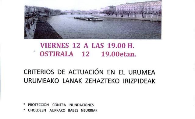 El próximo viernes 12, Kalapie junto con la Asociación de Vecinos de Martutene presentará una propuesta alternativa de encauzamiento del río Urumea. Se hablará de los criterios básicos de actuación en el río: la protección frente a inundaciones, la generación de espacios de recreo, la preservación de la biodiversidad y la continuación del recorrido ciclista y peatonal a lo largo del Urumea desde el centro de San Sebastián hasta conectar con los barrios y pueblos de las márgenes del río, Loiola, Martutene, Astigarraga y Hernani.