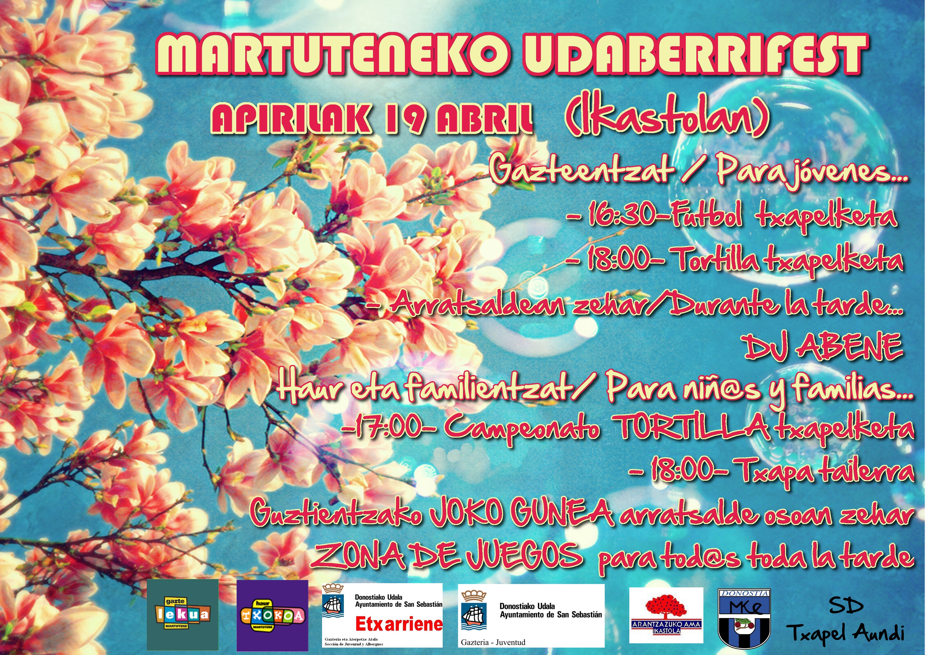 Archivado en Aisialdia/Ocio, Auzobizitza/Vida de barrio, Bizilagunak/Ciudadanos, Ekintzak/Actividades, Elkarte gastronomikoak/Sociedades Gastronómicas, Eragile sozialak/Agentes Sociales, Etxarriene, Gazteleku, Haurtxoko, Iragarkiak/Anuncios, Jaiegunak/Festividades, Kirola/Deporte, Kultura/Cultura, Martutene Kirol Elkartea, Partaidetza/Participación, Txapel Aundi, Udaletxea/Ayuntamiento, Zerbitzuak/Servicios · Tagged with adolescentes, campeonato, chapas, dj abene, etxarriene, fútbol, fiesta, gazteak, gazteleku, haurrak, haurtxoko, jóvenes, jokuak, juegos, martutene, nerabeak, niñas, niños, primavera, tailerra, taller, tortila, tortilla, txapa, Txapel Aundi, txapelketa, udaberrifest