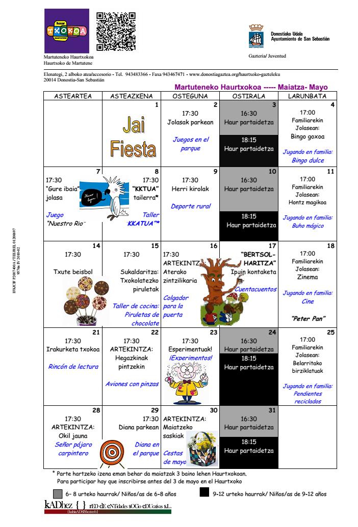 Haurtxokoa: maiatzeko programazioa / programación de mayo