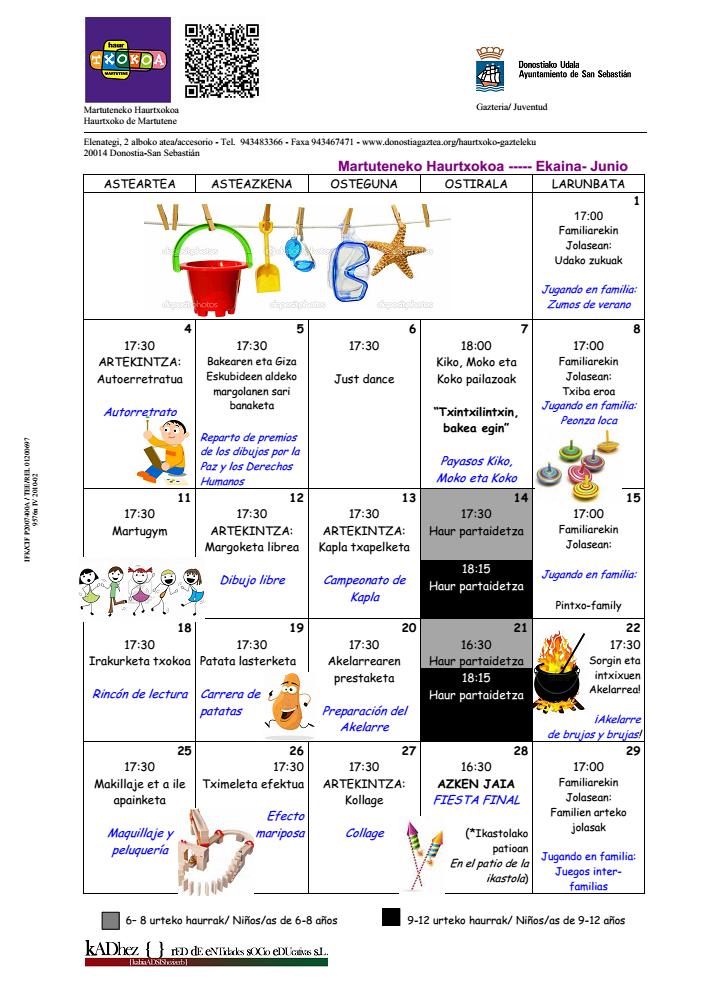 Haurtxokoa: ekaineko programaketa / programación de junio