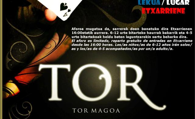Gabonak Zuretzat programaren barruan, gaur, Etxarriene eta Donostiako Udalaren Gazteria Atalaren eskutik Tor Magoa izango da Martutenen «Hator Magiara» ikuskizuna eskeintzeko.