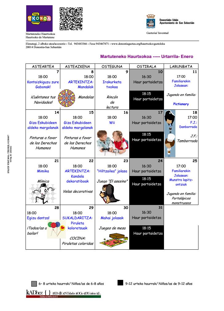 Haurtxokoa: urtarrileko programaketa / programación de enero
