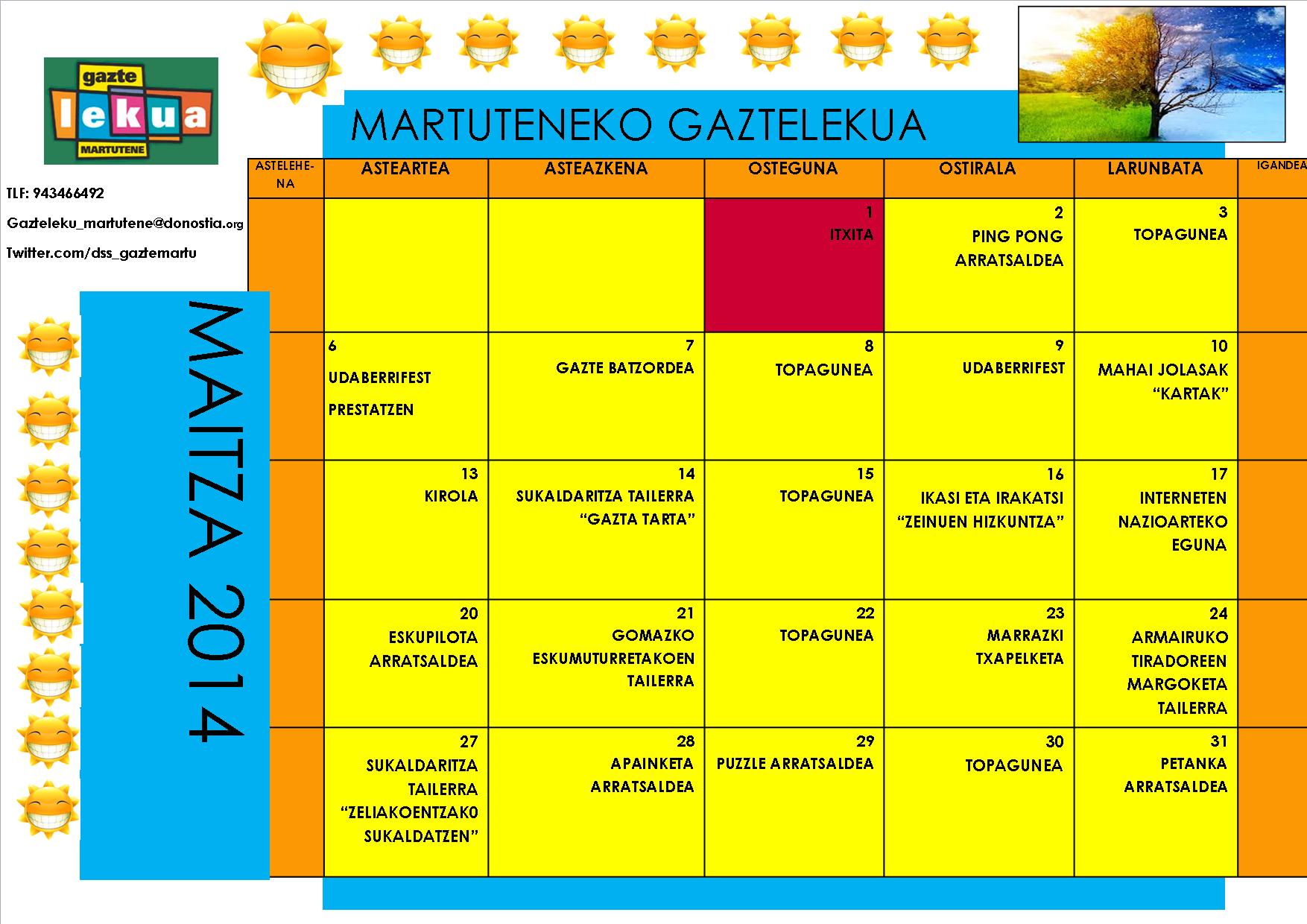 Gazteleku Martutene – Maiatzeko programazioa / Programación de mayo