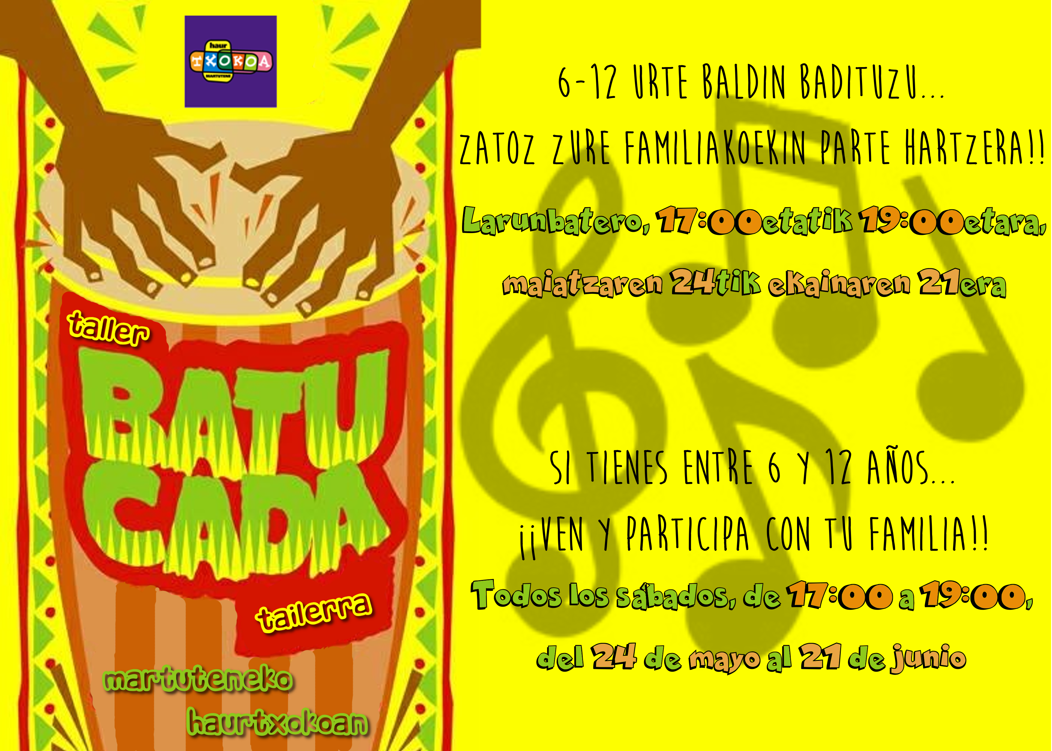 Haurtxokoa: Haur eta familientzako batukada tailerra / Taller de batucada para niños/as y familias