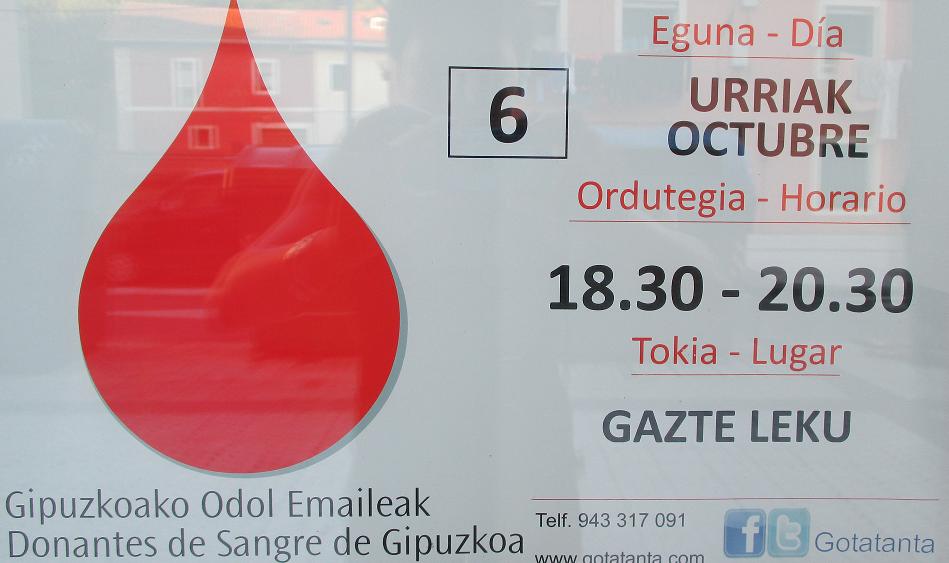 Odol emaileak / Donantes de Sangre: urriak 6 octubre, 18:30-20:30 Gaztelekua