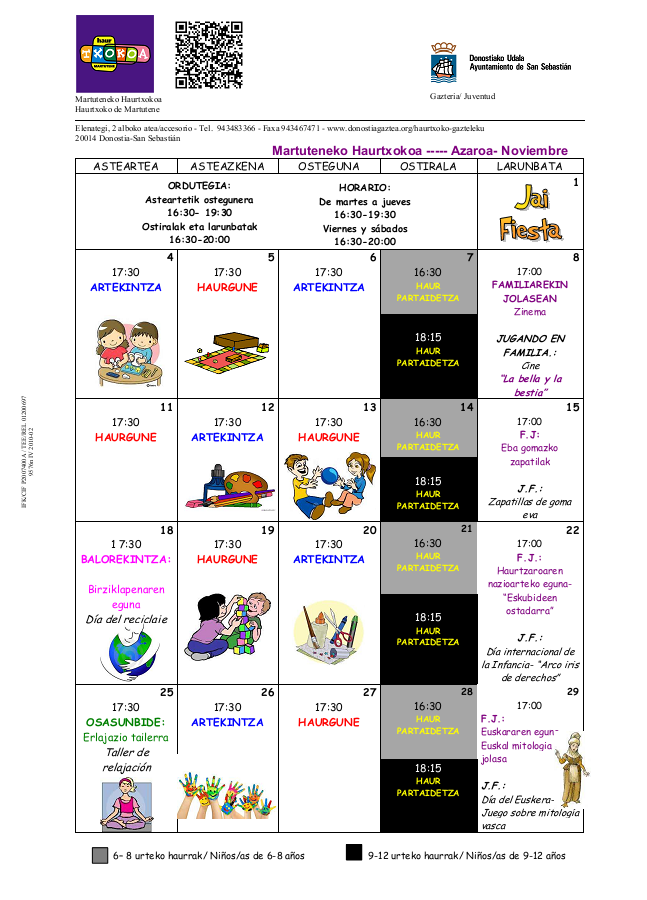 Haurtxoko Martutene: azaroko programaketa / programación de noviembre