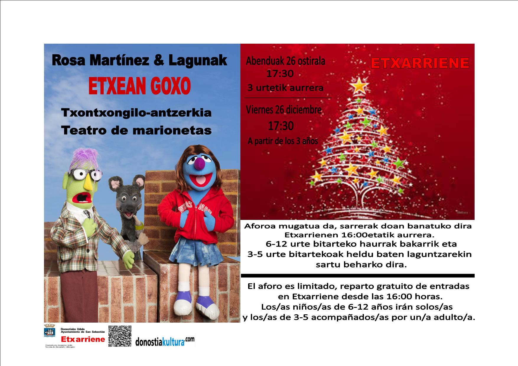 Gaur / Hoy 17:30 Etxarriene: Rosa Martínez «Etxean goxo» txotxongilo-antzerkia / teatro de marionetas