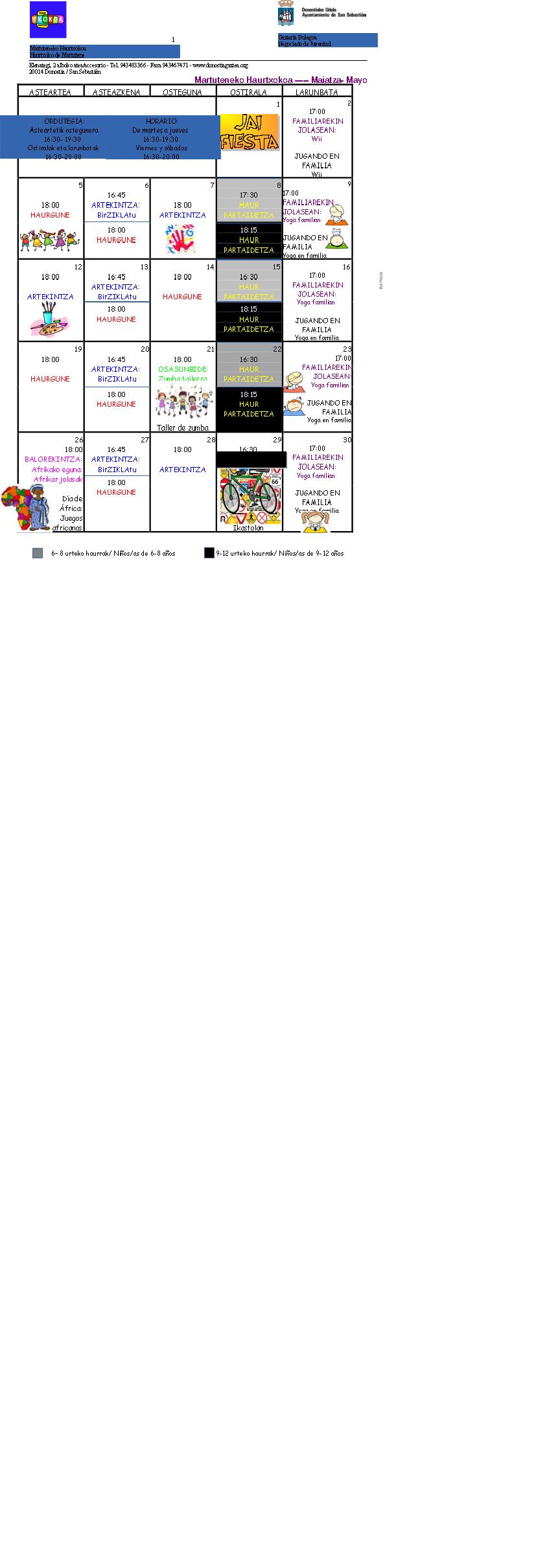 Haurtxoko Martutene: maiatzeko programaketa / programación de mayo