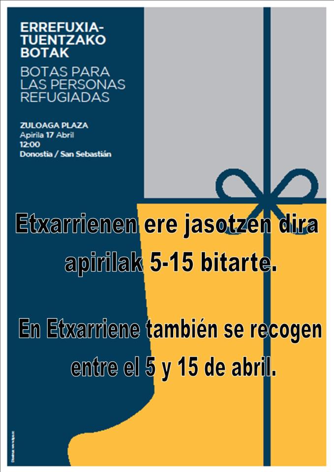 ← ETXARRIENEN ere #KatiuskaErronka Errefuxiatuentzako botak ekimena abian / #DesafíoKatiuska Botas para las personas refugiadas también se recogen en ETXARRIENE · Posted on 7 de abril de 2016 · Leave a Comment · 1240 × 1754