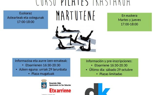Archivado en Aisialdia/Ocio, Auzobizitza/Vida de barrio, Bizilagunak/Ciudadanos, Etxarriene, Loiola kultur etxea/ Centro Cultural de Loiola · Tagged with etxarriene, euskara, martutene, pilates