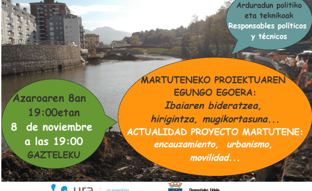 Archivado en Aisialdia/Ocio, Auzobizitza/Vida de barrio, Bizilagunak/Ciudadanos, Ekintzak/Actividades, Eragile sozialak/Agentes Sociales, Etxarriene, Iragarkiak/Anuncios, Partaidetza/Participación, Udaletxea/Ayuntamiento, Zerbitzuak/Servicios · Tagged with arduradunak, bilera, ibaia, martutene, partaidetza, participación, políticos, politikoak, proiektua, proyecto, río, responsables, reunión