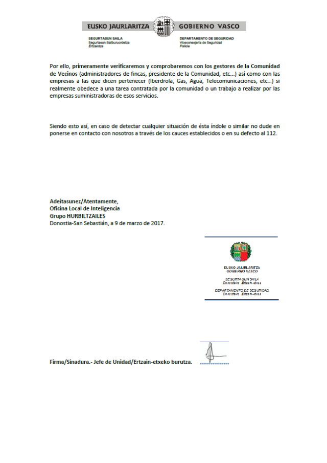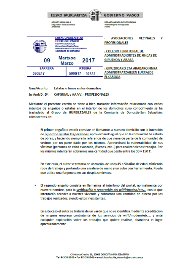 Etxebizitzetan gertatu daitezkeen iruzurren inguruko oharra / Aviso de posibles estafas o timos en domicilios