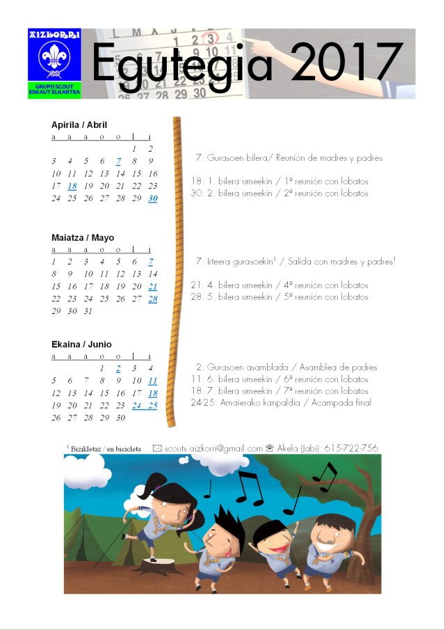 Archivado en Aisialdia/Ocio, Auzobizitza/Vida de barrio, Ekintzak/Actividades, Eragile sozialak/Agentes Sociales, Etxarriene, Iragarkiak/Anuncios, Partaidetza/Participación, Udaletxea/Ayuntamiento, Zerbitzuak/Servicios · Tagged with abril, acampada, apirila, bilera, calendario, egutegia, ekaina, gazteak, gurasoak, haurrak, irteera, jóvenes, junio, kanpaldia, maiatza, mayo, Mendia, monte, niños, orientación, padres, reuniñon, salida
